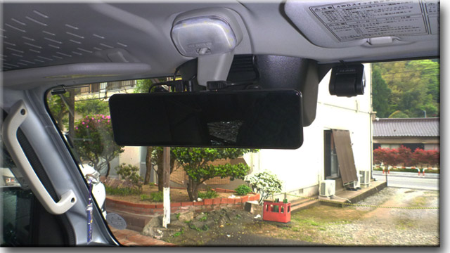 前後ドライブレコーダー、ガラス左端にダイバーシティアンテナ配線は隠しています。