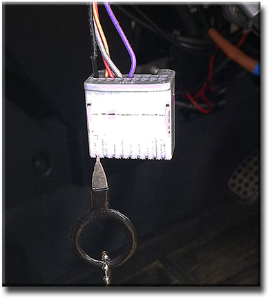 ここはスパイラルスイッチを交換しなければ行けないのですが、配線ソケットには6ピンが生きているのでオーディオ操作と警笛(ホーン)は最低5ピン有れば制御出来ますのでピン抜き工具を使い配線の入替です。