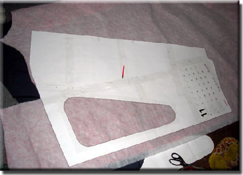 型紙はカレンダーの紙を使用してベタベタ張っていきます。(^_^;)身近に有る物は何でも代用・・・