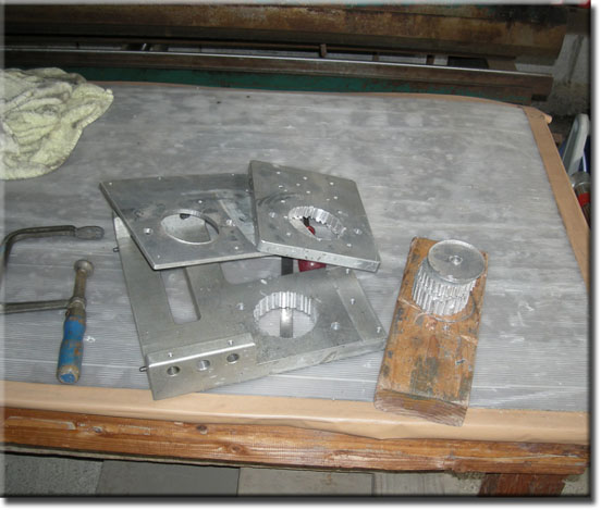 弟に聞くと古くてガタが出たので製品の印刷精度が出ないので廃棄していて部品取りにしているらしい・・・いらないという事でバラす。(^_^;)丁度25mmと15mmと5mmのアルミ板がとれた・・・弟が言うにはこのマシン3台で新車ベンツの350クラスが来るそうだ・・・