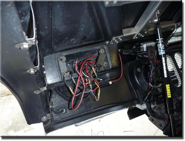 プロジェクターから出ている太い黒い線2本がバーナーの配線、赤黒の線はHi-Lo切り替え配線、白い線2本はCCFL式エンジェルアイの配線です。