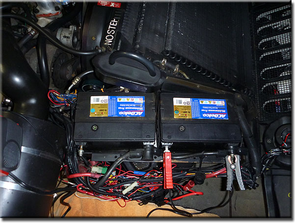 で早速開封、チェック・・・両方とも容量80%を示していました、つまりこのまま載せてもエンジンは楽勝スタートしますがここは100%初期充電します。