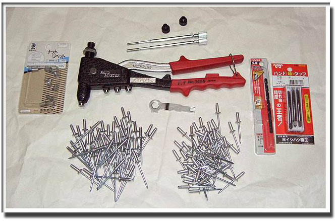 50本,6-550本,ドリルビット5mm1本,M6のタップキット等です。(ナットリベットは使用しませんがハマーの他の部分で使いたいので・・・)