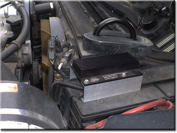M氏のH1のFSDはメーカーが違いますね,ヒートシンクの形状が・・・。(^_^;)バッテリー上部のステーに固定していますね