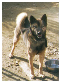 車庫の横に犬舎が在ったのでいつもの様に車を出しに行こうとすると,足音を覚えているので,私を出迎えに来るのにこの日は出てこない,おかしいな?と思い犬舎を覗いても, いない,良く見ると柵の隅で私の寝室に向かって腹ばいに倒れていました,体は霜で凍り付き(凍死?)それでも,和すらかな死に顔でした。